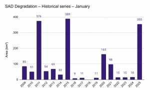 “Despite the increase, deforestation and degradation figures are expected to reduce in the coming months, as we are in the months where historically these disturbances are not so intense due to the rains. That’s why it is important that the government and relevant agencies use this time to focus even more on preventive actions and planning to contain the impacts before the most critical period begins”, warns Carlos Souza Jr., a researcher with Imazon. See January’s data here Access all the deforestation and degradation bulletins here Learn more about SAD here