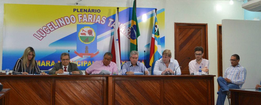 Solenidade de assinatura em Oriximiná. Da esquerda para direita: Ana Cleyde Batista (Vereadora); Tomé Wanzeler (P_residente da Câmara Municipal); Antônio Odinélio (Vice Prefeito); Silvano Andrade (Presidente MRN); Vasco Van Roosmalen (Diretor Presidente Ecam); Paulo Amaral (Pesquisador sênior Imazon); Sérgio Andrade (Dir. Executivo Agenda Pública); Antônio Augusto (Vereador)_