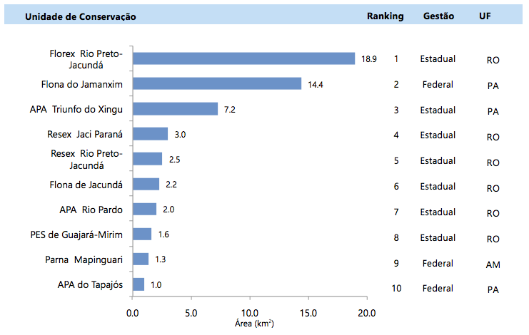 Figura 6. Unidades de Conservação desmatadas na Amazônia Legal em abril de 2016 (Fonte: Imazon /SAD).