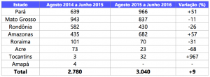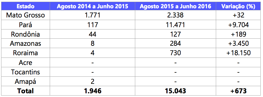 Boletim do desmatamento da Amazônia Legal (junho de 2016) SAD