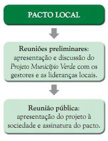 As principais instituições que devem fazer parte do pacto são: (i) organizações dos setores produtivos locais (pecuaristas, agricultores, madeireiros, pequenos produtores, comerciantes, industriais, entre outros); (ii) sindicatos dos trabalhadores rurais e patronais; (iii) prefeitura; (iv) secretaria de agricultura e secretaria de meio ambiente do município; e (v) Organizações Não Governamentais (ONGs) com atuação na região².